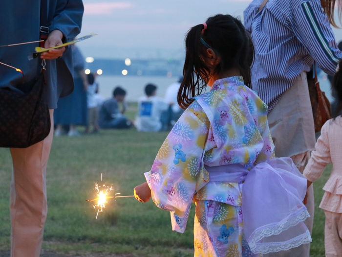 花火師による幻想的な演出と、日本の夏の原風景を感じさせる手持ち花火体験。 大迫力の尺玉はありませんが、火花の音や匂い、心温まる夏の夜をお楽しみください。
