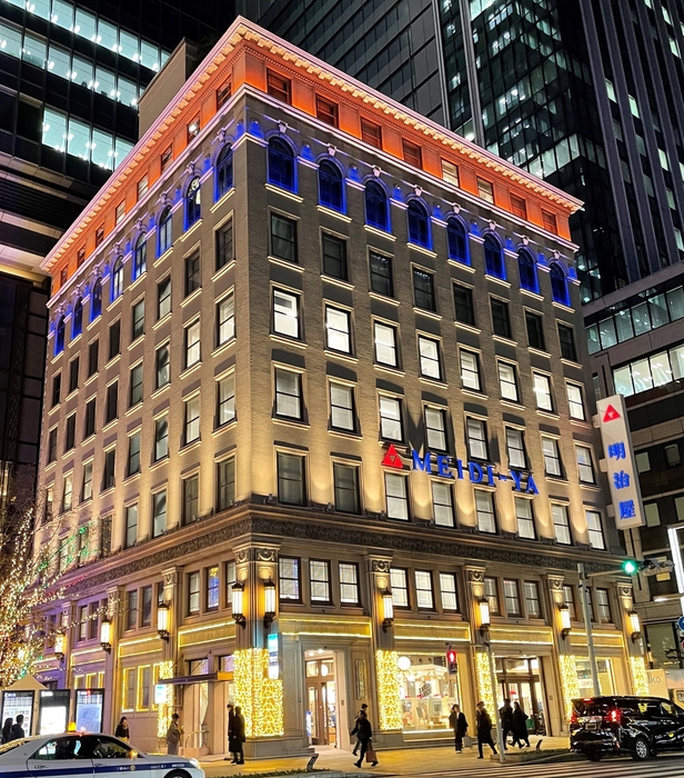 株式会社明治屋(本社:東京都中央区、代表取締役社長:磯野太市郎)は、2024年12月24日(火)と25日(水)に明治屋京橋ビル上部を明治屋のコーポレートカラーに照らすライトアップを実施いたします。