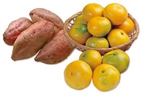 「鹿児島県産早生みかん」は、甘みと酸味のバランスがよく、皮をむくと広がる香りが特徴で全国的にも評判のみかんです。また、「鹿児島県産安納紅」は鹿児島県種子島で収穫されるさつまいもで、さつまいもの中でももっとも甘いとされる希少なさつまいもです。