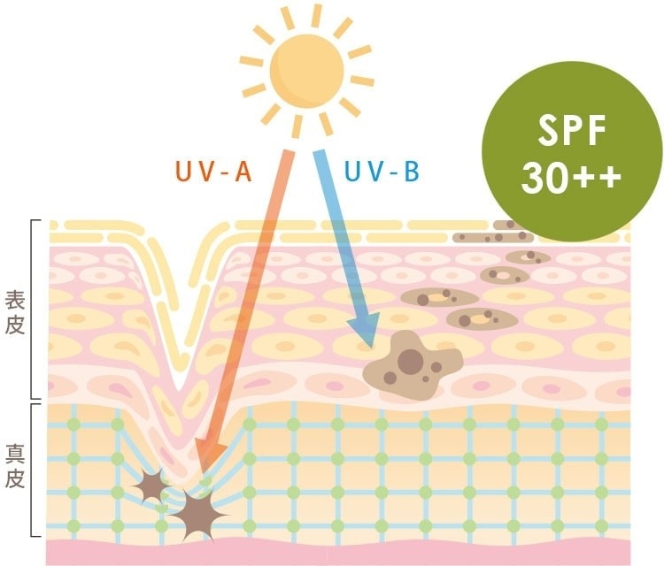 日常生活や屋外での軽いスポーツやレジャーまでOKとされるSPF30、PA++が紫外線をブロック。肌への負担は少なく、光老化の原因となるUVA波までしっかりカットします。