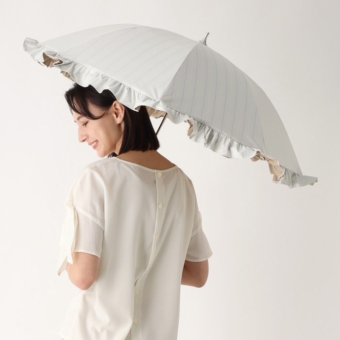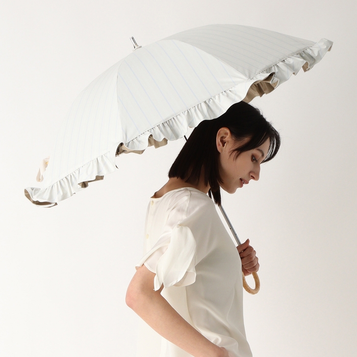 シンプルと華やぎもちょうど良いバランスで、日々の装いに合わせやすい日傘。