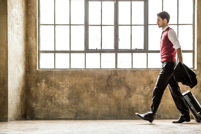 立ち姿と動きの中の美しさを求めたフォルムは、まるで、堂々と胸を張ってきているような前姿と、背筋を伸ばして着ているようなスリムな後ろ姿を演出し、さらに、動きの中で見せる引き締まったフィット感が質実剛健な男らしさを際立たせます。