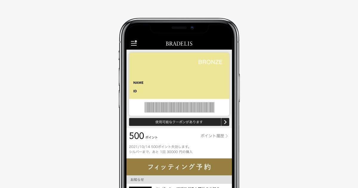 アプリ上のデジタル会員証で会員ステージやポイント履歴の参照が可能です。