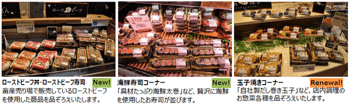 今回の改装では、オフィス・単身者が多い地域ニーズにお応えするため、惣菜コーナーや手作りパンの「小麦の郷」に新商品を豊富に品ぞろえいたします。また、体に優しい商品を取り扱う「ビオラルコーナー」を設置するほか、1階のレジを増設し、スムーズなお会計を実現いたします。
