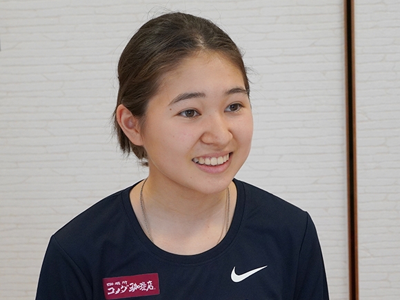 高校時代は2年連続で全国高校駅伝に出場している薮谷選手。高2時には大学でもチームメイトとなった石黒選手とタスキをつなぎ、3年では5区区間10位で走っている。大学入学直後、4月8日の金栗記念選抜陸上中長距離熊本大会では3000mで4位(9分24秒85)と、先輩たちに先着する順調な滑り出しを迎えている。「まだ自己ベストは出ていないのですが、スピード感が出せるようになってきていい感じだと思います」と、新入生の中でも特に充実感をみなぎらせている。「大学生の間にハーフマラソンも走れる選手になりたいです。日本代表として走るのも目標です」と話し、3年時に行われるワールドユニバーシティゲームズをターゲットとしているそうだ。今年中に5000mで15分50秒を切るという目標とともに、駅伝のために安定感もつけていくことを具体的な課題として設定している。「速い先輩たちがいっぱいいるので、いいところを盗んでがんばっていきます」と笑顔で話した。