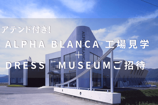 アルファブランカのウェディングドレス縫製工場と、ドレスの歴史を学べる「DRESS.MUSEUM」体験ツアーです。