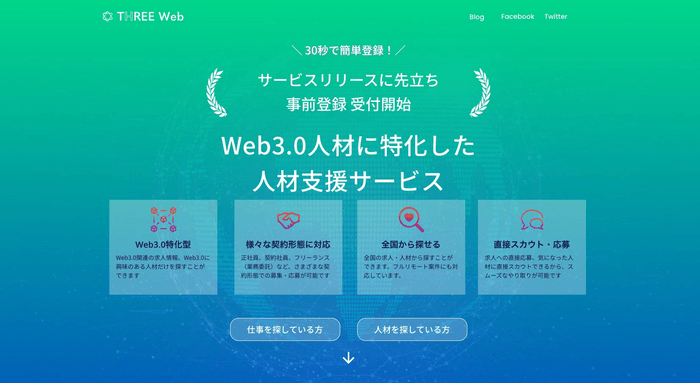 Web3.0特化求人サービス「Three Web」の事前登録開始(事前登録特典あり)