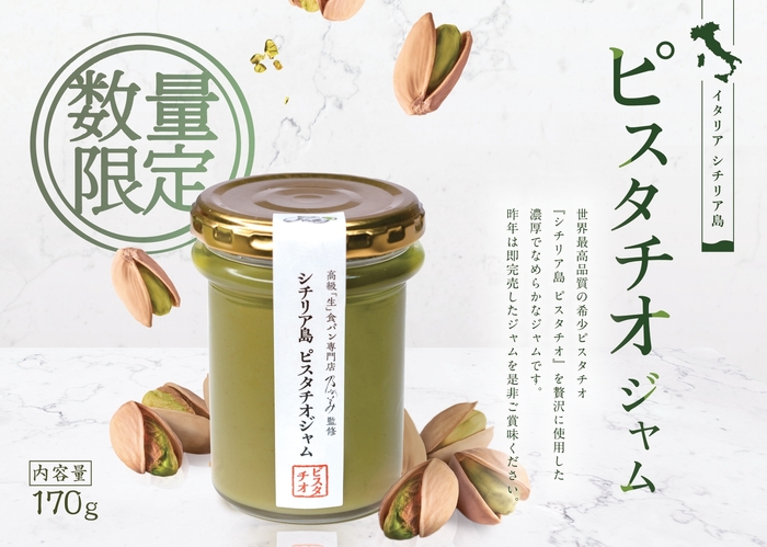 「シチリア島ピスタチオジャム」は、毎年この時期に季節限定品として展開。お客様からも、大変ご好評をいただいており、昨年度も発売後に即完売をした大人気のジャムです。