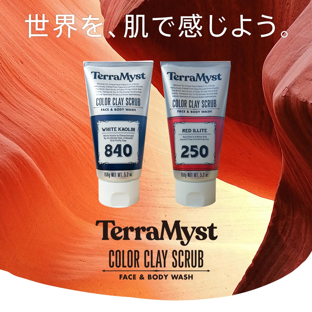 Terra Mystの『COLOR CLAY SCRUB』で世界を旅する気分を味わい、日々のスキンケアをお楽しみください。