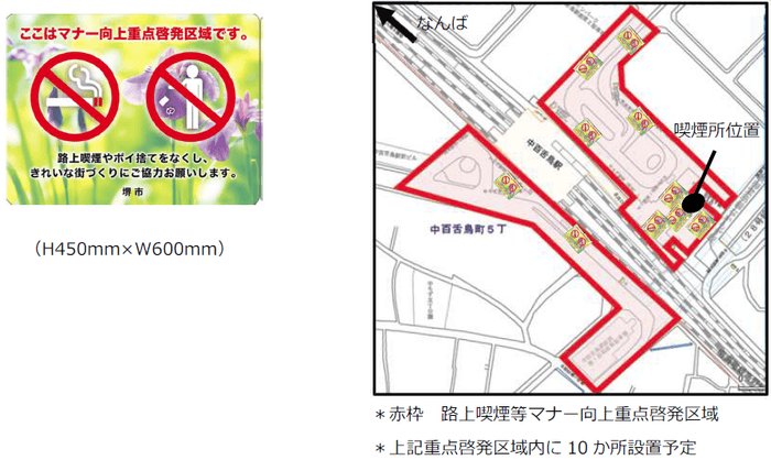 このプロジェクトは、本市が路上喫煙等マナー向上重点啓発区域※1 に指定する中百舌鳥駅周辺地域において、デザインの力で喫煙者の行動変容を促し、路上喫煙等マナーの向上に取り組むものです。