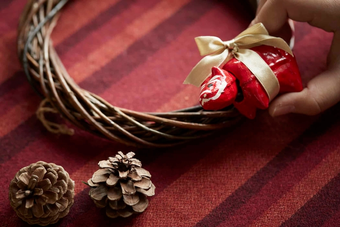 赤べこのオーナメントや会津木綿、木の実などを用いてクリスマスリースをデコレーションする「赤べこリースづくり」を実施します。当館オリジナルのリースづくりで、自分の好みにデコレーションした、クリスマスの思い出を持ち帰ることができます。