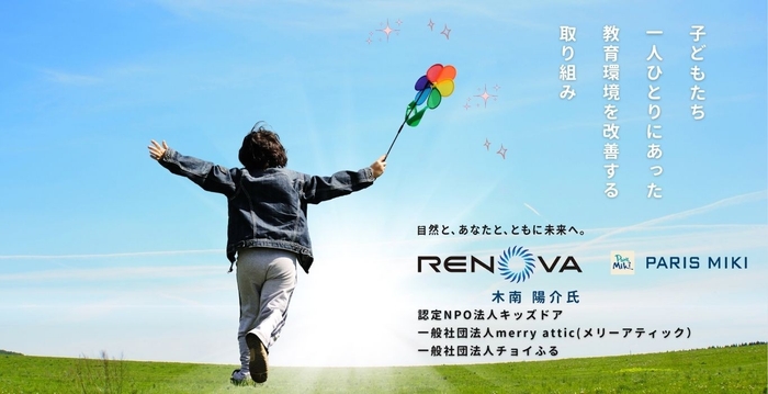 株式会社パリミキ(本社:東京都港区、代表取締役社長:恒吉裕司)と木南陽介(株式会社レノバ代表取締役社長CEO)(本社:東京都)は、東京都に住む子どもの健全な育成を目的として、認定NPO法人キッズドア(理事長渡辺 由美子)、一般社団法人merryattic(メリーアティック)(代表理事上田馨一)、一般社団法人チョイふる(代表理事栗野泰成)と協力し、経済的な理由でメガネを購入することができない世帯の子どもたちにメガネを届け、子どもたちの教育環境の改善や保護者の負担軽減につなげてまいります。