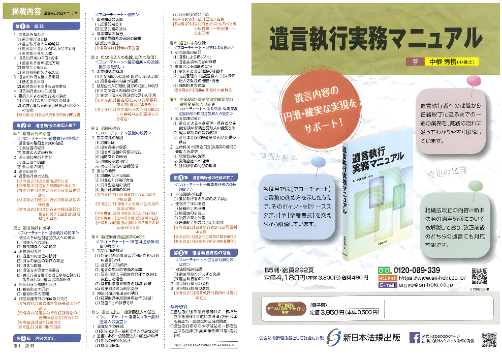 遺言内容の円滑・確実な実現をサポート!「遺言執行実務マニュアル」好評につき少部数ながら再入荷いたしました!