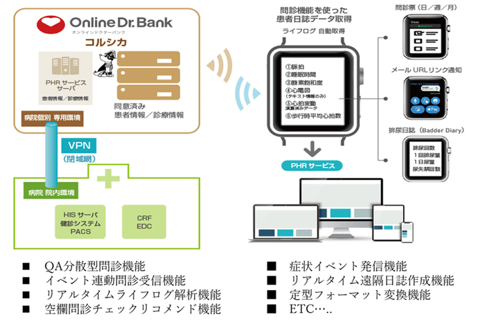 *2:コルシカ;ウェアラブルデバイスやスマートフォンを用いて、患者のライフログや問診関連データを収集し、医師の臨床をサポートするシステム。
