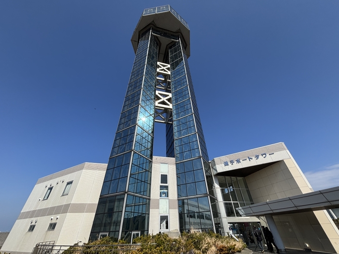 高さ57.7mのランドマークタワー。銚子漁港の目の前にあり、展望室からは太平洋、利根川河口など、360度の大パノラマが楽しめます。