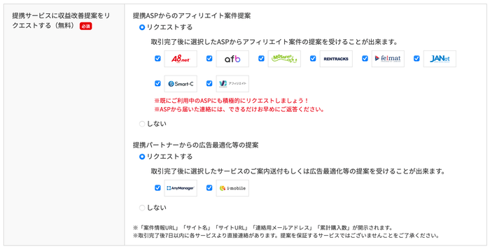 提携サービスに収益改善提案をリクエストする(無料)