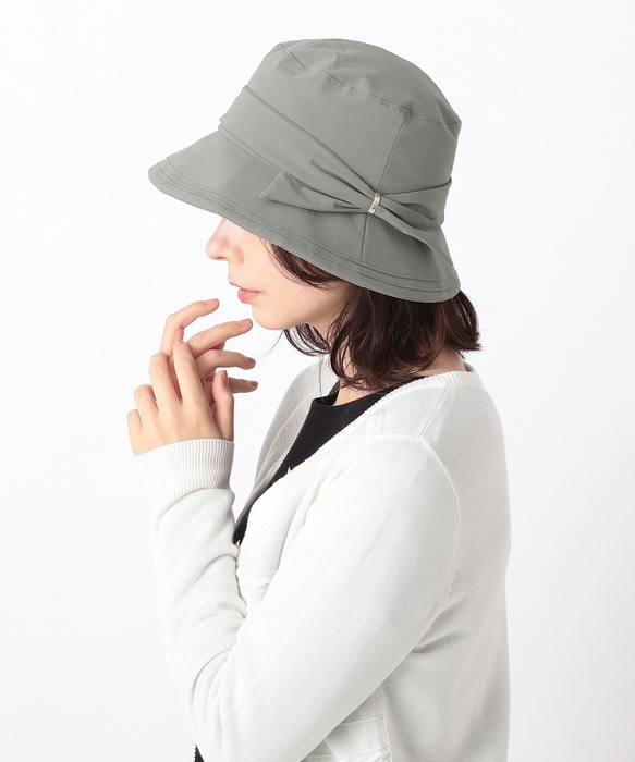 淡い色のグラデーションが、お顔まわりをフェミニンに格上げ。ラメ糸(スリット糸)のほのかな輝き、ブランドロゴ刺繍周りにあしらったラインストーンのキラめきが上品な華やぎを演出します。