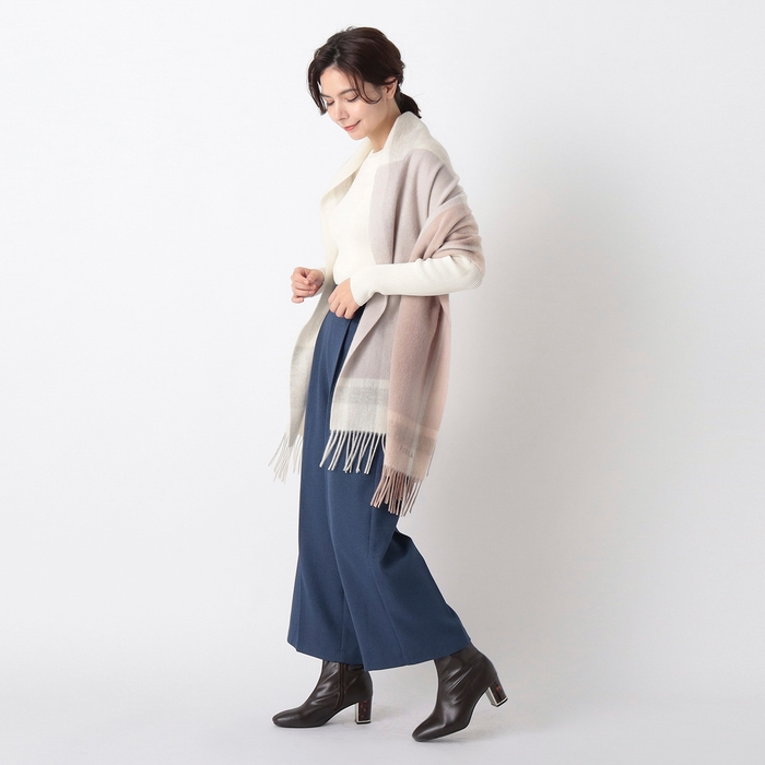 カシミヤ100%ならではの暖かで軽やかさでまといやすく、日常から通勤、お出かけスタイルまで万能に重宝。