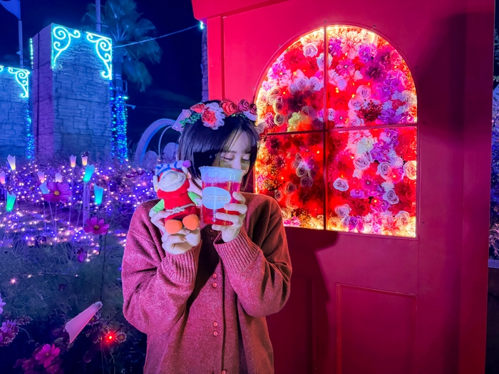 イルミネーションスポット、ドリンク、身に着けるアイテムを推しカラーに統一して撮影