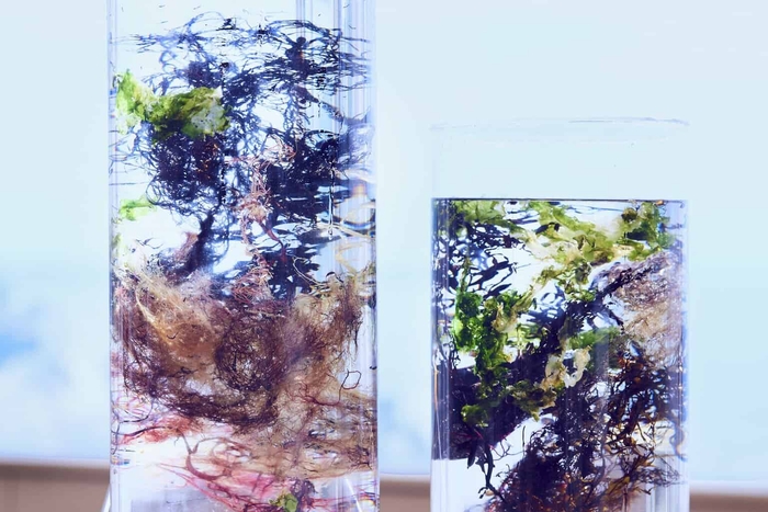 地上の植物と異なり冬に良く育つ海藻は、春が最も種類・量共に豊富になるシーズンです。透明度の高い海水と変化に富んだ地形により、伊豆半島に生息する海藻は約400種と全国最多です(参考:静岡県ホームページ「生物の宝庫 駿河湾」)。海藻は海の深さによって光の当たり具合が変わることで、緑色、褐色、紅色と鮮やかな色に育ちます(参考:海藻おしば協会ホームページ)。また、海藻を広げると、まるで花のように美しい形をしています。そんな色鮮やかで美しい海藻を通して春を感じてほしいと考え、本イベントの実施に至りました。