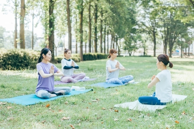 代々木公園の広場で気持ちよく心と体を整える!