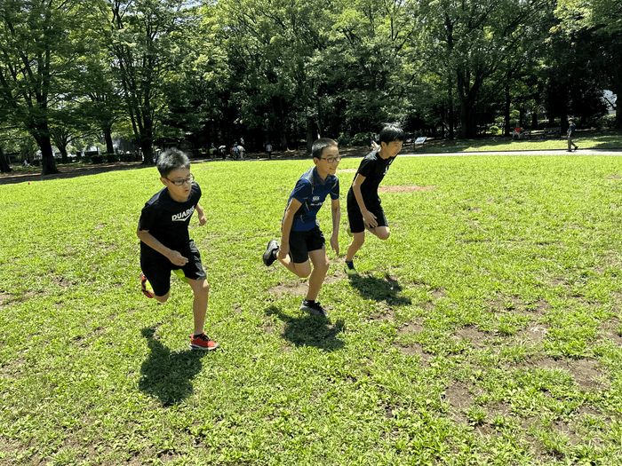 (4)広い芝生エリアでかけっこ&50m計測会
