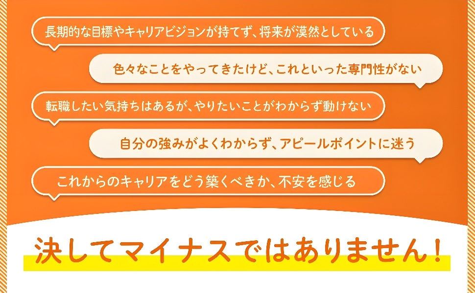 「やりたいこと」や「強み」が明確ではないビジネスパーソンや、結婚・出産・子育て・介護などのライフイベントによってキャリアに悩む人に向けたアドバイスが盛り込まれた実践的な内容となっています。