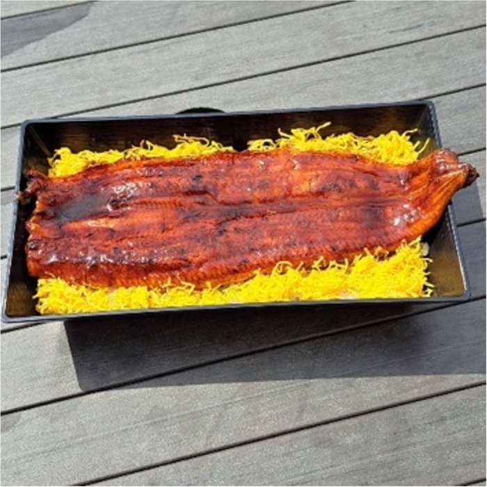 長さ25cmある鰻をまるまる盛りつけ見た目にも迫力がある丼です。