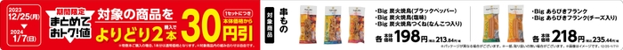 【お得なセール! 対象の串もの商品 よりどり2本購入で30円引き!(本体価格から値引き) ※4 】