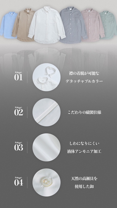 襟が取り外せて、シワになりにくい理想のシャツ「2way shirt」を 新色・新柄含め計6色展開