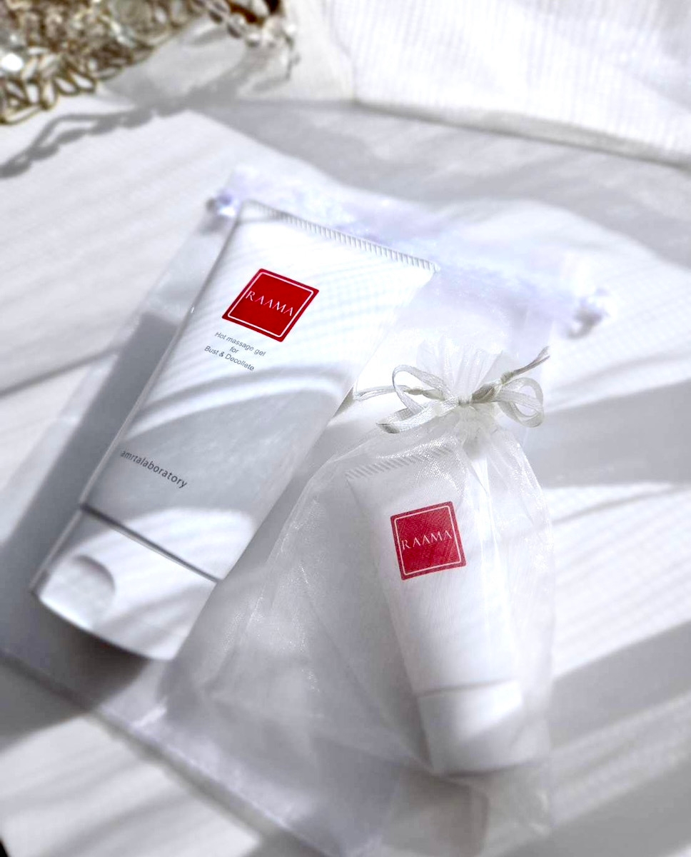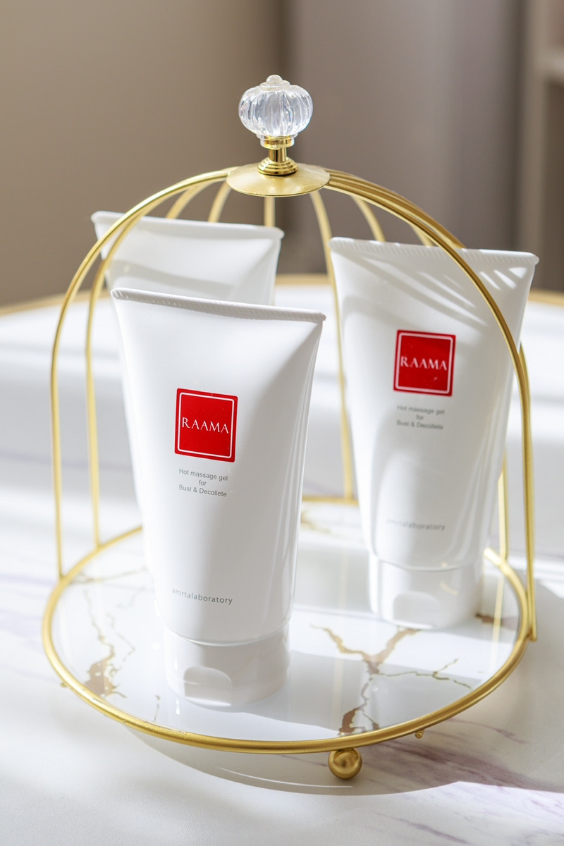 今回のイベントでは、アムリタラボラトリーの「RAAMA(ラーマ)」バストケアジェルを実際に試していただけます。