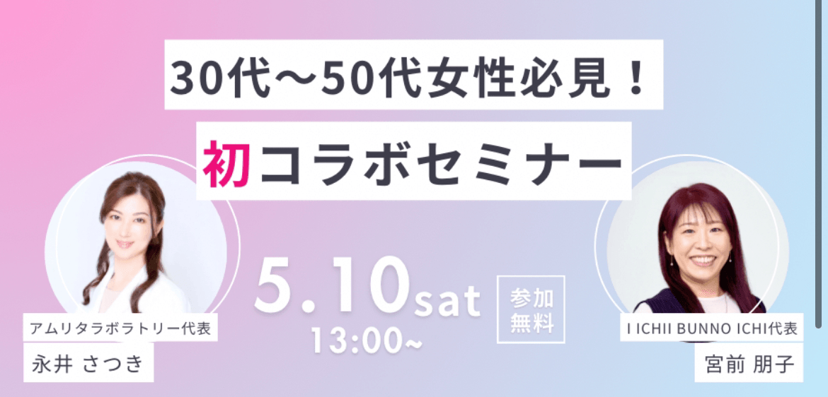 アムリタラボラトリー代表合同会社(東京都中央区)永井さつきは、5月10日(土)、神保町のフェムケアショップ「ICHI BUNNO ICHI」にて、コラボイベントを開催致します。
