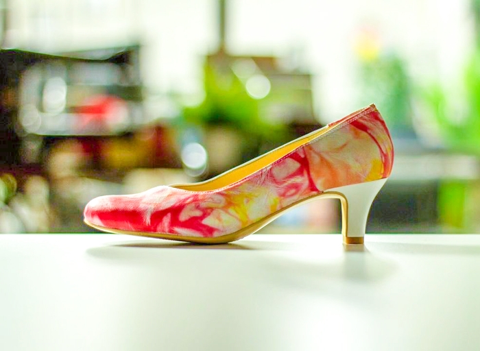 靴の構造は従来通りの動物の革を使った、伝統的な製法ですが、革の元になる動物の飼育も環境に負荷を与えない、獣害で駆除されたエゾシカの革を活用するなどしています。エゾシカは年間30億円以上の農作物に被害を与えたり、自然の生き物でありながら個体数が増えすぎて森林を破壊してしまう問題のある状態になっています。バランスを取るために捕らえられたエゾシカですが、従来は捨てられていた皮を、絞り染めによりデザイン性の高い革に生まれ変わらせ靴にすることに成功しました。表面にある模様はタイダイ(絞り染め)により、野山を駆け巡っていたときについた傷を分かり難くし、デザイン性を高める役割も担っています。他にも日本国内で製造する高品質なヒールや中底などの素材を使いCO2排出を低減しています。