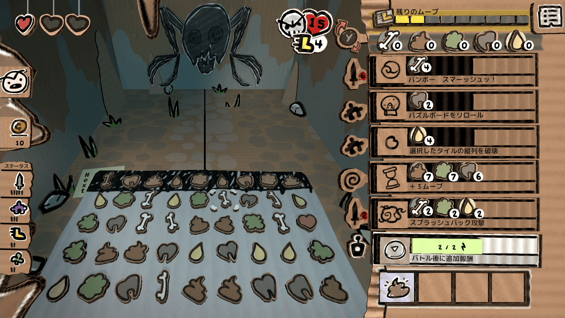 本作は「The Binding of Isaac」にも登場する「バンボ」が主人公の、パズルベースのデッキ構築型ローグライクゲームです。同じ絵柄の「タイル」を4つ揃えて消すことで、敵を攻撃したり、攻撃を封じたりすることができます。特殊効果が発動する「スペル」や、身につけて効果がでる「トリンケット」を集め、敵を倒して獲得したコインでカスタマイズしながら戦いを有利に進めましょう。