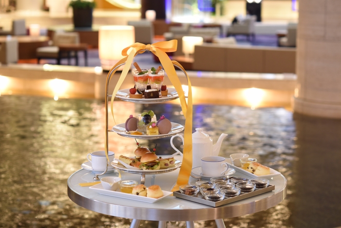 コロナ禍のストレスを解消し、天井高17mのロビーを臨む水辺の空間で、スイーツやお茶を優雅に味わう非日常のほっとするひとときをお過ごしいただけます。