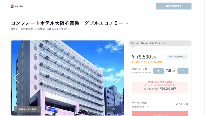 株式会社グリーンズ(本社:三重県四日市市、代表取締役社長:村木雄哉、証券コード:6547)は、コンフォートホテル新大阪、コンフォートイン福岡天神など「コンフォート」ブランドのホテル8店舗について、株式会社Unito(本社:東京都千代田区、代表取締役:近藤佑太朗)の運営する「unito」にて1ヶ月単位で契約できる長期滞在者向けプラン掲載を開始いたしました。