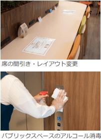 ・席を一部間引きし、広くご利用いただけるようレイアウトの変更をしております。