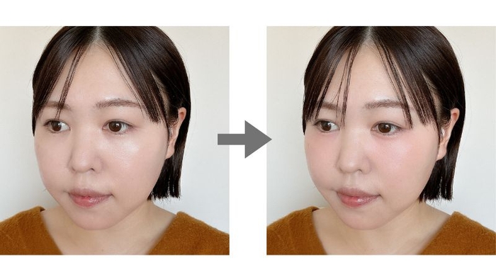 アレンジ① フェイスラインとあごに乗せて小顔効果