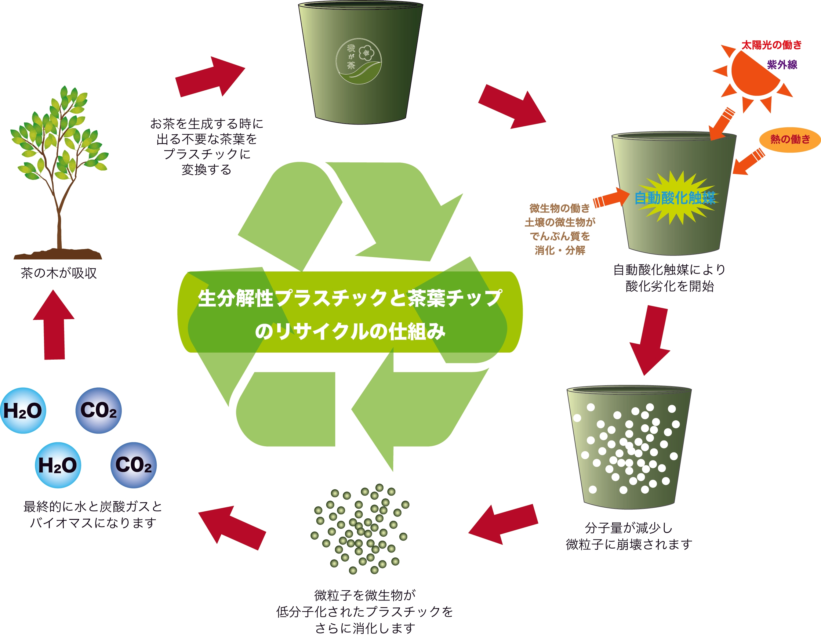 お茶が土壌環境に優れていると聞き、生分解性プラスチックと茶ノ木を合わせることで将来環境負荷を減らすきっかけになればと、このプロジェクトを立ち上げました。