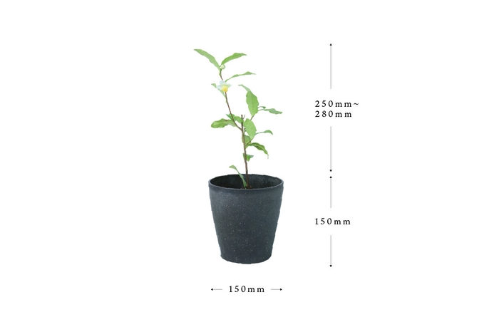 この植木鉢は、お茶の葉を原料とし、更にバイオの力で5年経つと自然に風化していく鉢です。約5年後、水と二酸化炭素に分解されます。