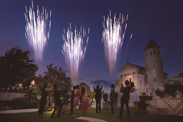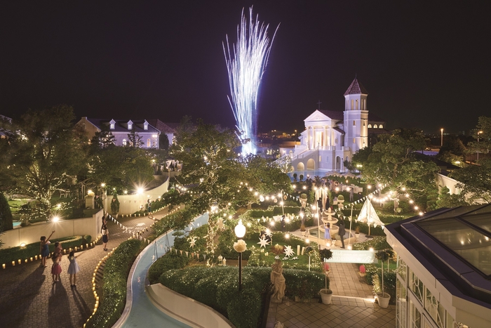 約6000坪の広大な敷地にそびえ立つ荘厳な大聖堂や、キラキラと水辺が輝くプール付きガーデン、調度品に囲まれた豪華な会場などライトアップされた幻想的な空間で、ソーシャルディスタンスを確保し安心安全に楽しむこの夏の一大イベントです。