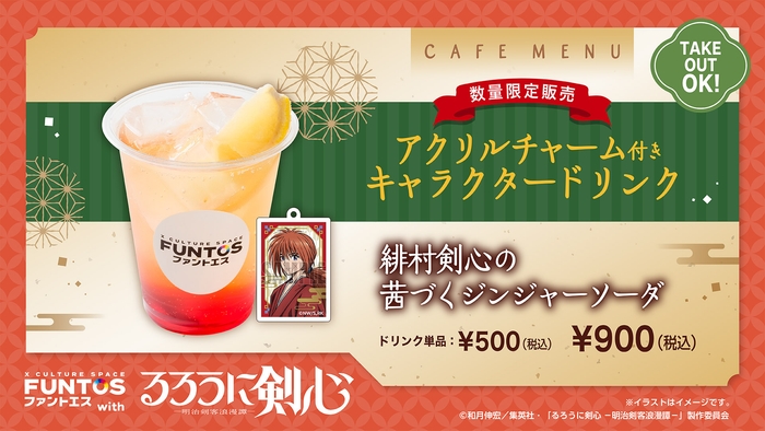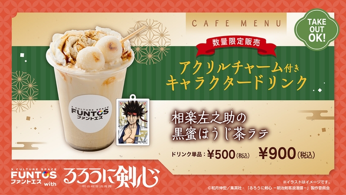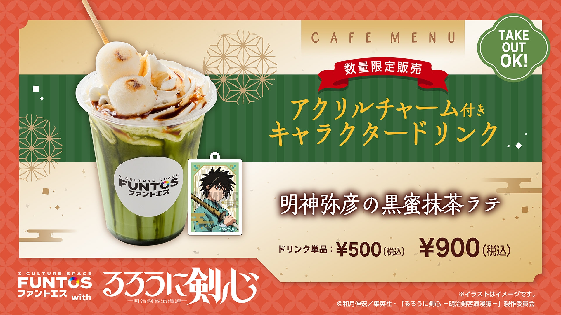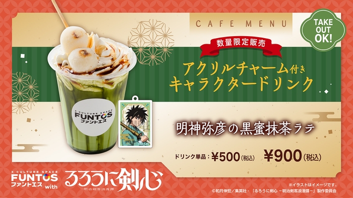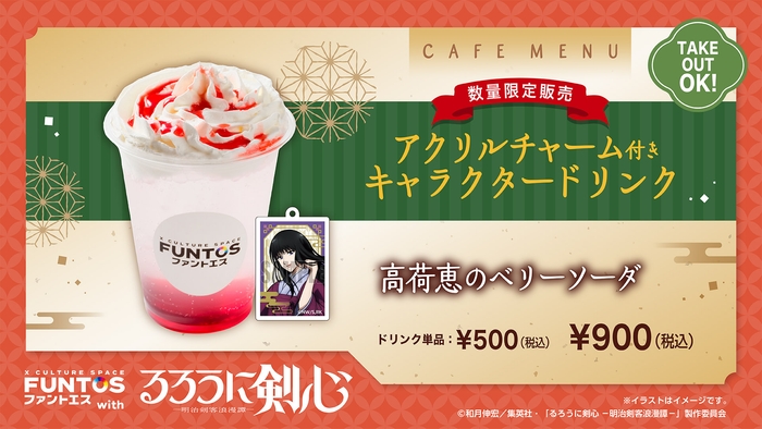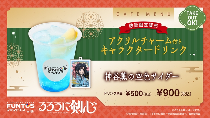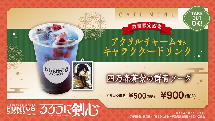 期間中(12/21~1/30)、アクリルチャーム付きドリンク900円(税込)、ドリンク単品500円(税込)にて提供いたします。