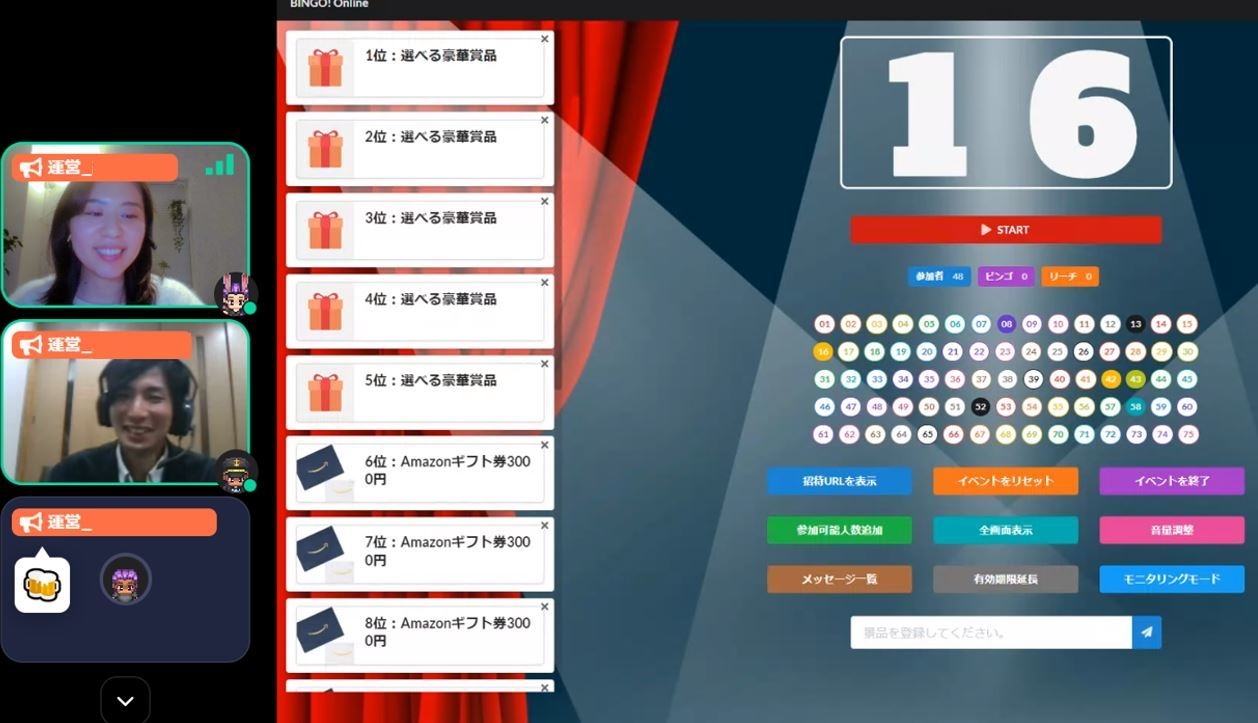 ・ビンゴ大会(豪華賞品5名、Amazonギフト券10名)