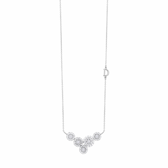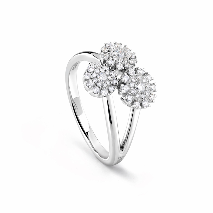 ホワイトゴールドに大きさの異なるダイヤモンドをいくつもセットした繊細で優雅な花弁を束ねたデザインは、大切な記念日や大事な出来事に一層の華やぎを添えるセレブレーション ジュエリーとして、身に着つる方を幸福感に包み、ダイヤモンドの優美な煌めきで見る人々をも魅了するでしょう。