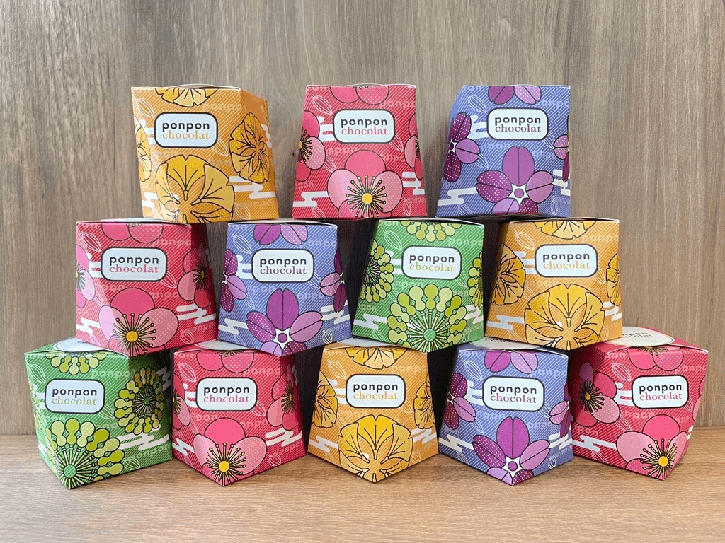 組み合わせは16通り。お渡しする方に合わせてパッケージのデザインやフレーバーをお選びいただくことが出来ます。「なぜこのパッケージを選んだのか。」「なぜこのフレーバーを選んだのか。」大切な方とのひとときを「pon pon chocolat」をつまみながらお楽しみいただけます。