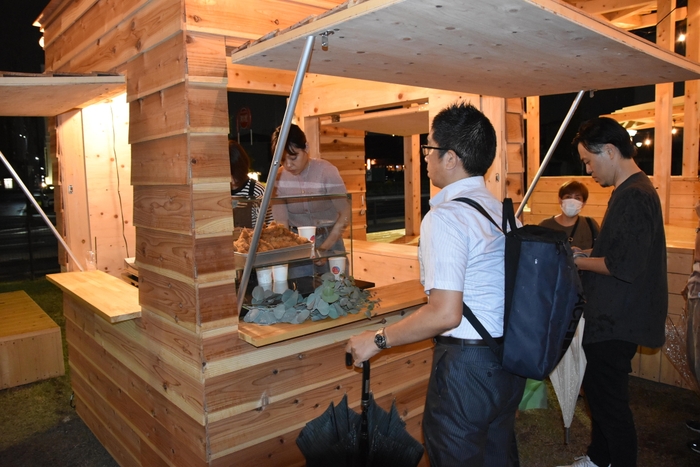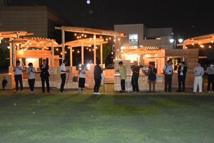 オープニングセレモニーに集まった「カリマチ会議」のメンバーからは、「模型で見ていたより大きく、周辺を通った高校生なども『なにあれ?!』と話題になっていた。注目されていると感じた」など、完成度の高さと今後の活用に期待を寄せました。刈谷市役所都市政策部まちづくり推進課の尾崎佳織係長は「できる前はどうなるか心配だった。3か月間の社会実験で多くの方に使っていただき、皆さんの胸に刺さると嬉しい」と話しました。セレモニー翌日には、オープンを記念して、佐藤研究室の学生によるイベント「カリマチカフェ」も開催。多くの方の笑顔が溢れた週末となりました。