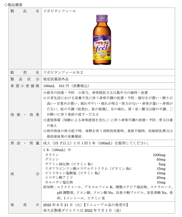大正製薬株式会社[本社:東京都豊島区 社長:上原 茂](以下、当社)は、ドリンク剤「リポビタンファイン」と「リポビタンフィール」(いずれも指定医薬部外品)を現代の女性の疲れに寄り添った処方にリニューアルし、6月21日(火)に発売いたします。