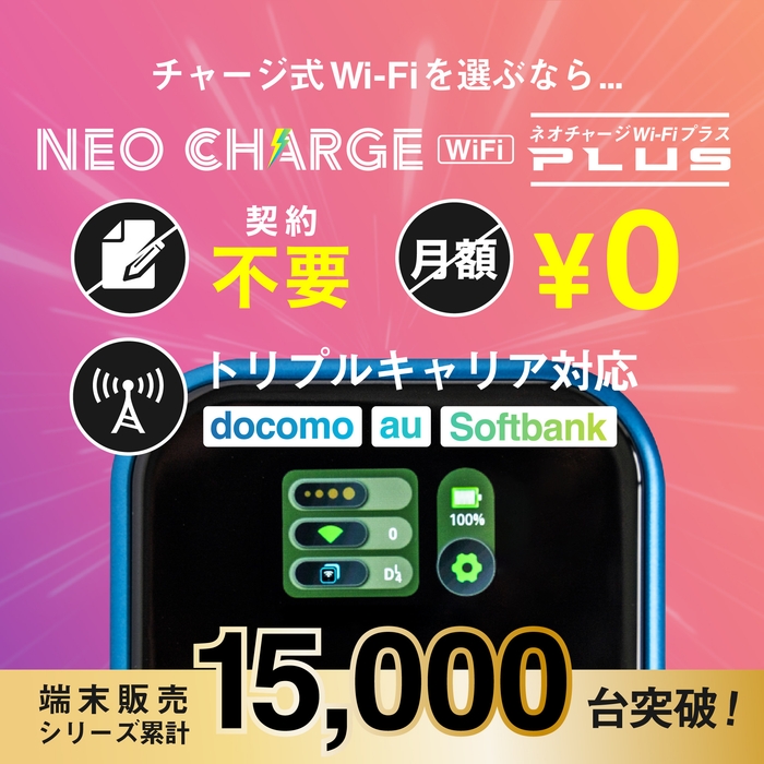 TV・雑誌でも掲載!契約不要/月額0円 ありそうでなかったチャージ式のポケットWiFi 『ネオチャージWiFi』・『ネオチャージWiFi Plus (海外対応)』 お得なキャンペーンを開催