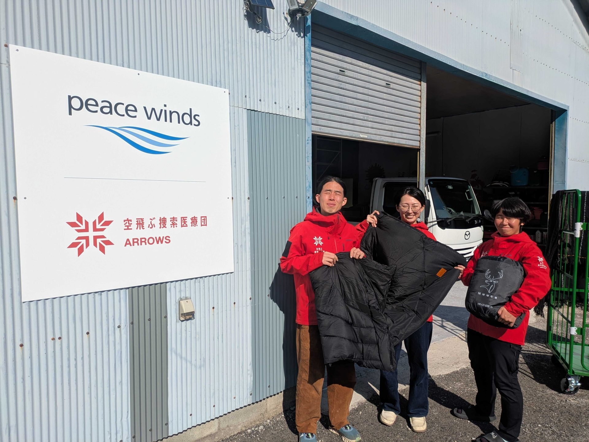 寄付した寝袋は、ピースウィンズ・ジャパンが運営する空飛ぶ捜索医療団「ARROWS」が、11月5日(水)から8日(土)までの4日間、愛媛県今治市と共催で実施した「多機関連携災害時医療救助訓練」において、実際に活用されました。