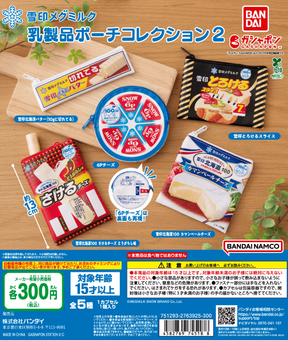 雪印メグミルク株式会社(本社:東京都新宿区、代表取締役社長:佐藤 雅俊)は、株式会社バンダイ(本社:東京都台東区)のオリジナルカプセルトイブランド「ガシャポン®」とのコラボレーション企画『雪印メグミルク 乳製品ポーチコレクション2』を2025年8月4週目より順次、全国のガシャポンバンダイオフィシャルショップ、玩具売場、量販店、家電店などに設置されたガシャポン自販機シリーズにて発売いたします。
